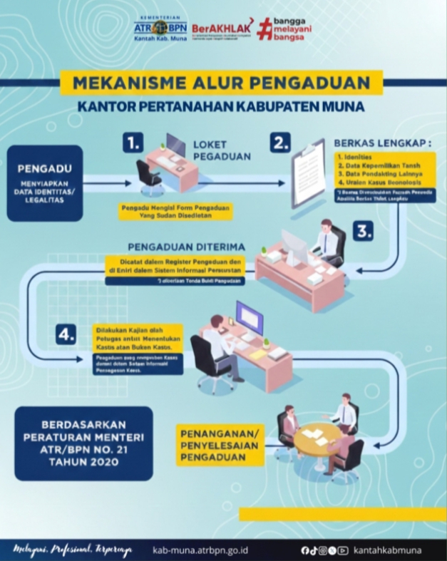 Alur pengaduan di Kantor Pertanahan Muna, yakni: