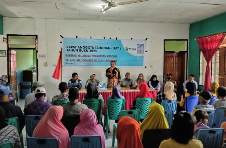 Muna, Sultramedia – Koperasi Kelurahan Merah Putih (KKMP) Watonea berhasil menyelenggarakan Rapat Anggota Tahunan (RAT) Ke- 1 tahun buku 2025, di aula Kantor Kelurahan Watonea, Kamis (05/03/2026).