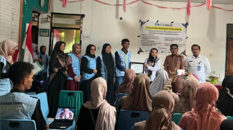 Muna, Sultramedia – Mahasiswa Kuliah Berdampak Komunitas Universitas Karya Persada Muna (KBK UKPM) menggelar sosialisasi pencegahan penyakit menular HIV dan bahaya Narkotika, Psikotropika dan Zat Adiktif lainnya (NAPZA), di aula Kantor Kelurahan Watonea, Senin (15/12/2025).