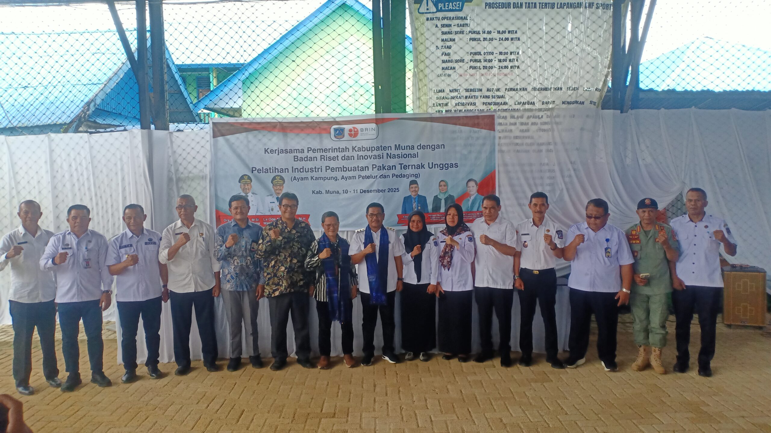 Muna, Sultramedia – Pemerintah Kabupaten (Pemkab) Muna bekerjasama dengan Badan Riset dan Inovasi Nasional (BRIN) gelar pelatihan industri pembuatan pakan ternak unggas, Rabu (10/12/2025).