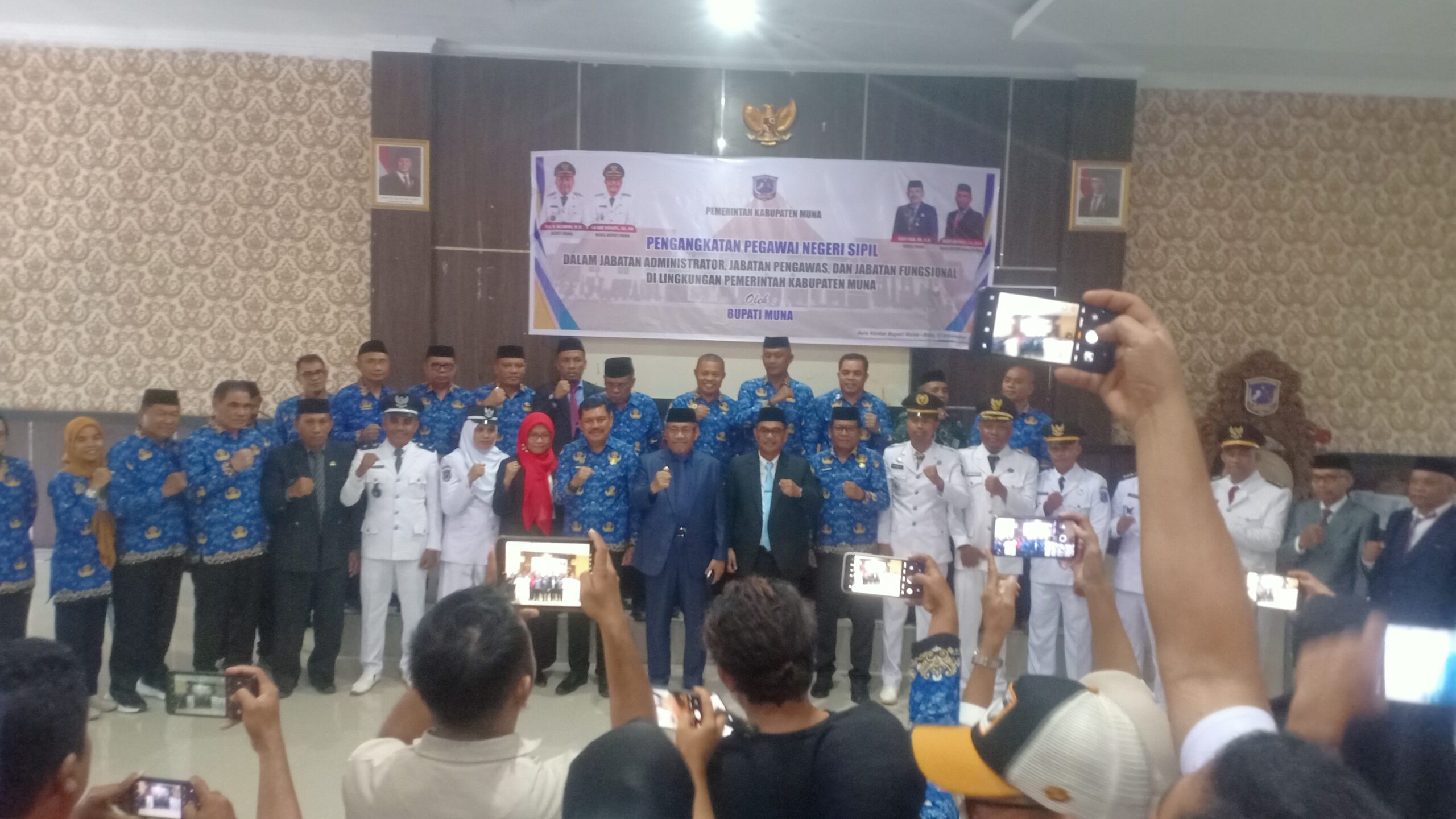 Muna, Sultramedia – Pemerintah Kabupaten (Pemkab) Muna gelar pengangkatan pegawai negeri sipil dalam jabatan administrasi, pengawas dan fungsional, di Aula Kantor Bupati Muna, Rabu (17/12/2025).
